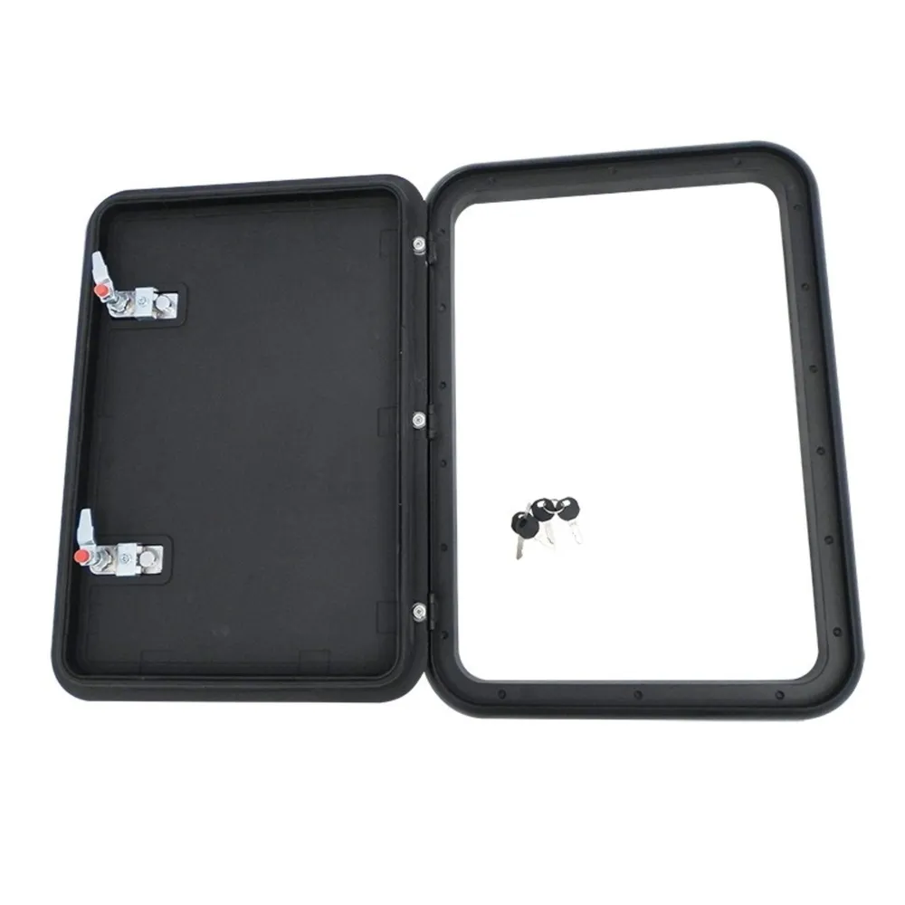 Upgrade your RV with the Coast to Coast RV External Access Door, designed for seamless installation and dependable security. This access door is made from strong plastic and features pre-drilled screw holes, making the installation process quick and hassle-free, with no need for infill. Equipped with metal locks and four keys, it ensures your storage compartments are securely locked, while the dust and water seals provide effective protection against the elements.