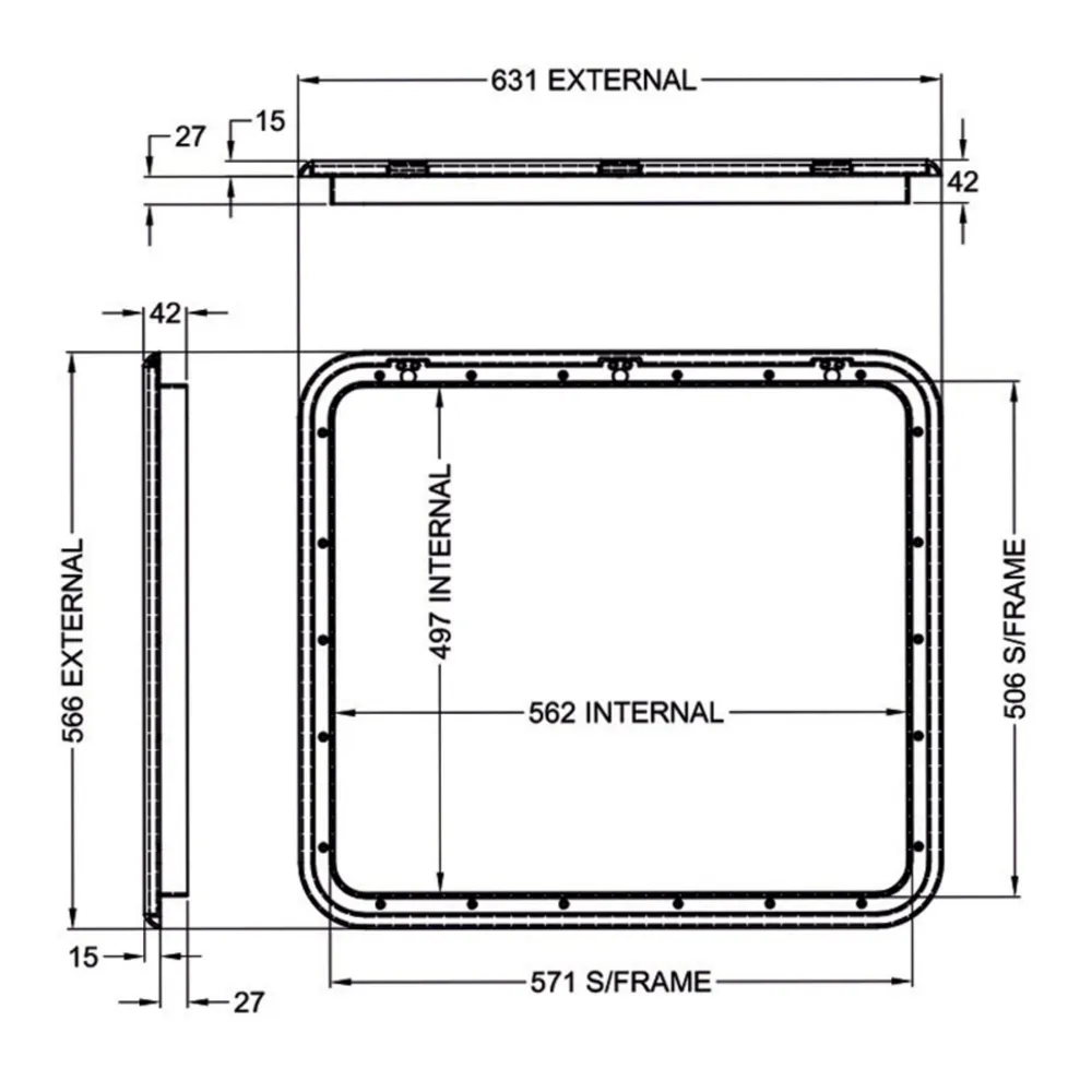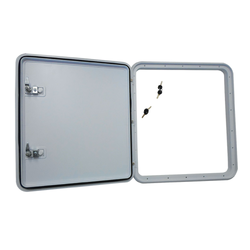 The Coast-to-Coast RV External Access Door offers a durable and secure solution for accessing your RV's storage compartments. Designed to fit a hole size of 506mm x 571mm, this access door is constructed from strong plastic and includes pre-drilled screw holes for a straightforward installation process. The lockable recessed handles and dust/water seal provide added security and protection, making it an ideal choice for your RV.
