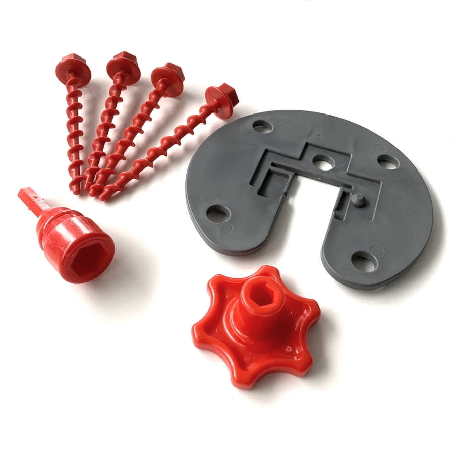 The screw peg kit is made from durable UV resistant plastic and includes both a hand driver & drill bit adapter allowing for use with an electric drill.