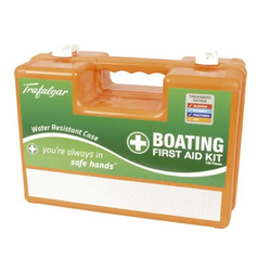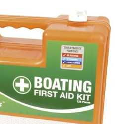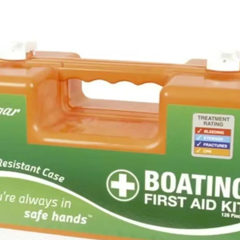 This kit features a water-resistant hard plastic case with 316 marine grade hinges and "O" ring seal. The outside of the case has a water-resistant clear set of instructions for resuscitation CPR, etc. You do not need to open the case for this. Inside the case, you will find 126 items ranging from heaps of adhesive plasters to antiseptic cream, all sorts of wound dressings, a blanket, tweezers, scissors, swabs, eye wash pads, etc.