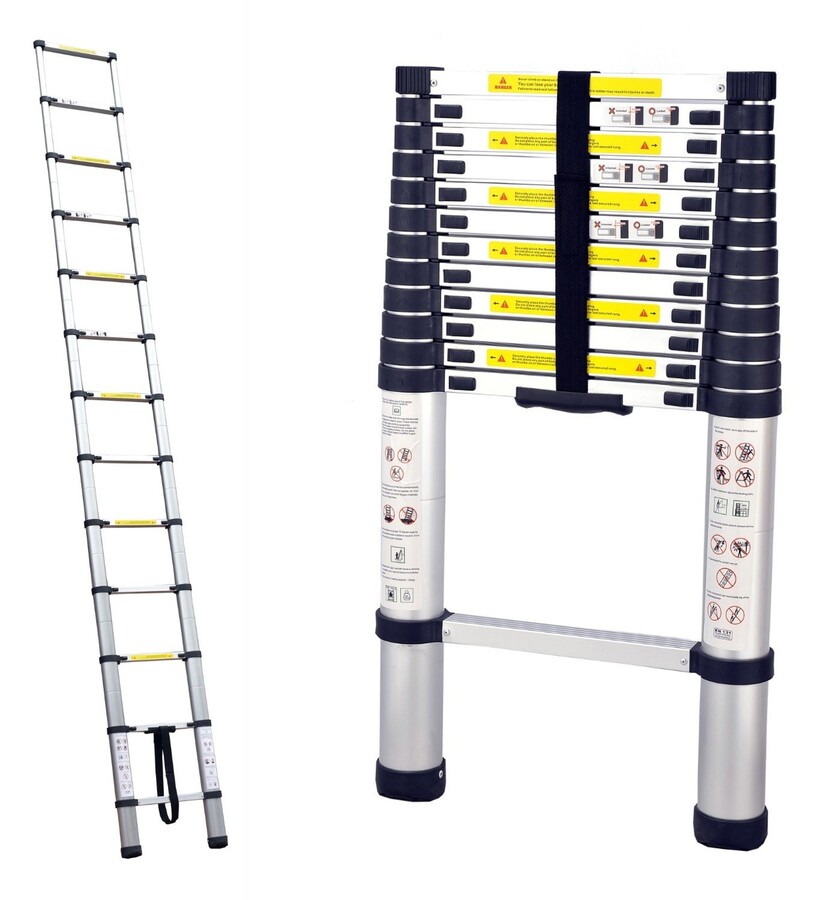 Introducing the latest innovation: the 3.8m telescopic ladder, engineered with the strongest and most durable aluminum alloy, built to support up to 150 kg of weight. The ladder is designed with 12 rungs that can be opened and closed individually in 30cm increments, allowing you to adjust the ladder to the ideal height for your task.
