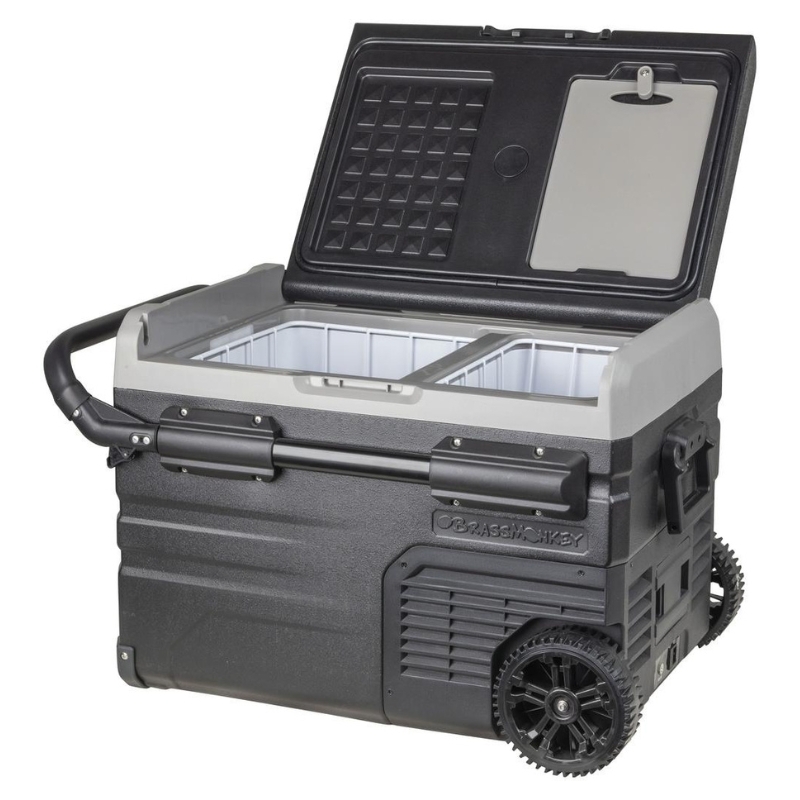 35L Brass Monkey Portable Dual Zone Fridge/Freezer with Wheels and Battery Compartment