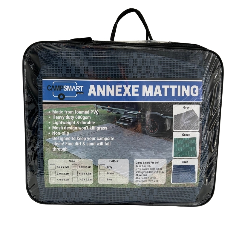 This PVC foam floor matting is very popular for use in caravan and camper trailer annexes.The matting lets sand, fine dirt and water to fall through while allowing the grass to breath. The PVC mat is rubber like and will not kill the grass, even when left down for extended periods. It's ideal for grassed RV sites where non-breathable floors are often not permitted at Caravan Parks. It can also be used as a ground sheet under tents, protecting tent floors and airbeds from puncture holes.