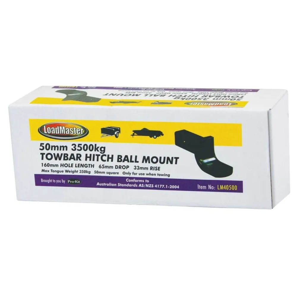 The LoadMaster 50mm Towbar Hitch Ball Mount is ideal for towing recreational RV's including Caravans, Pop Tops, Camper Trailers, Horse Floats & Boat Trailers. Made to conform with Australian Standard AS 4177.1-2004, this is a quaility product made to last.