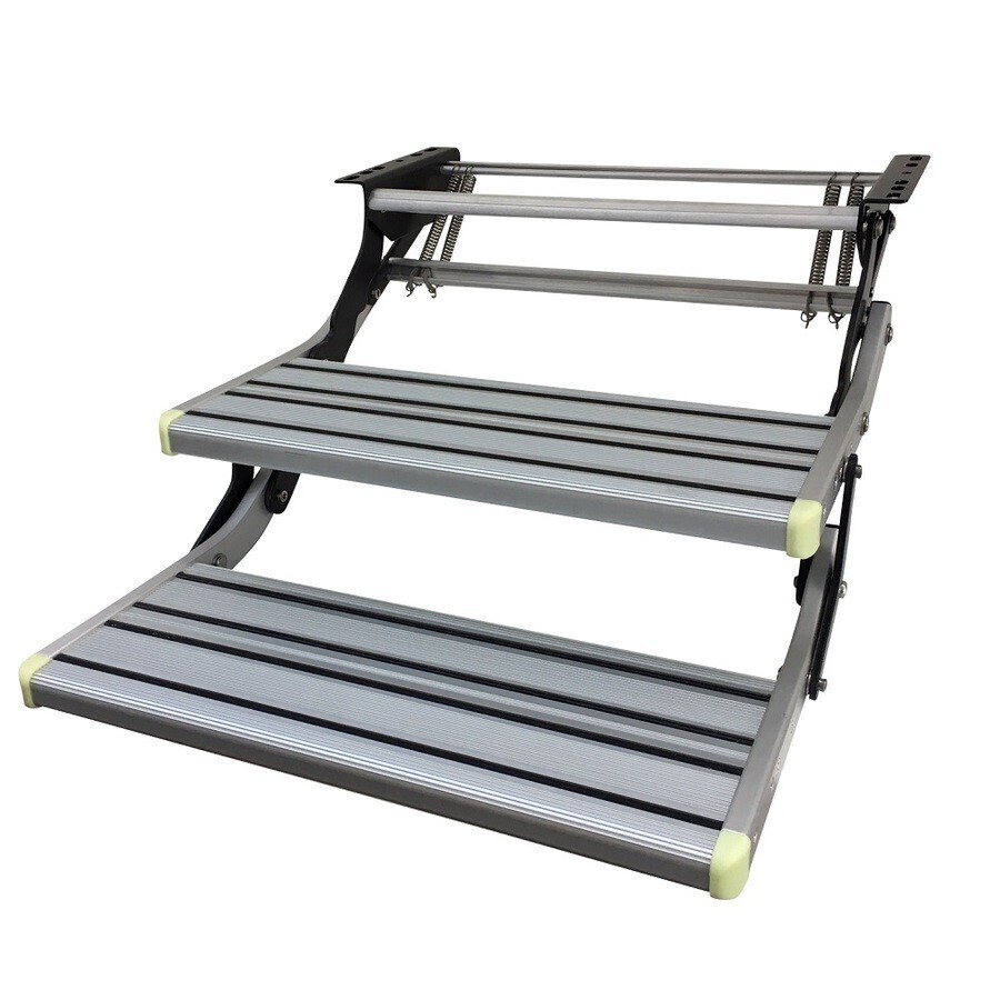 This double pull out aluminium step features outstanding design together with a premium quality build & finish. It is stylish a yet tough and lightweight step, easy to pull out and fold away. The double step is ideal for Off-Road Caravans and Camper Trailers which have an elevated entry into the RV.