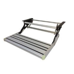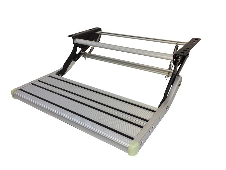 The step featured spring-loaded hinges, anti-slip ribbed tread with integrated rubber strips.