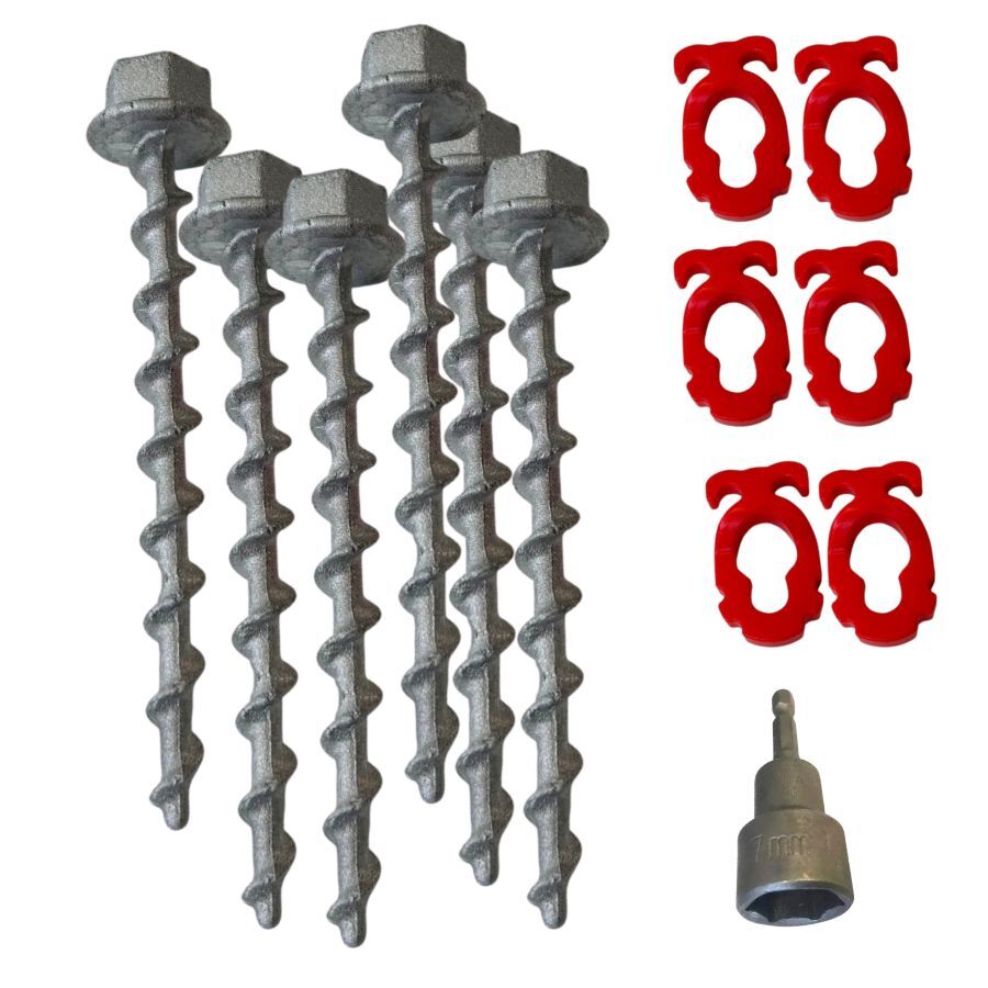 6X Small Alloy Screw In Peg with ABS Guy Rope Holder with 19mm Driver