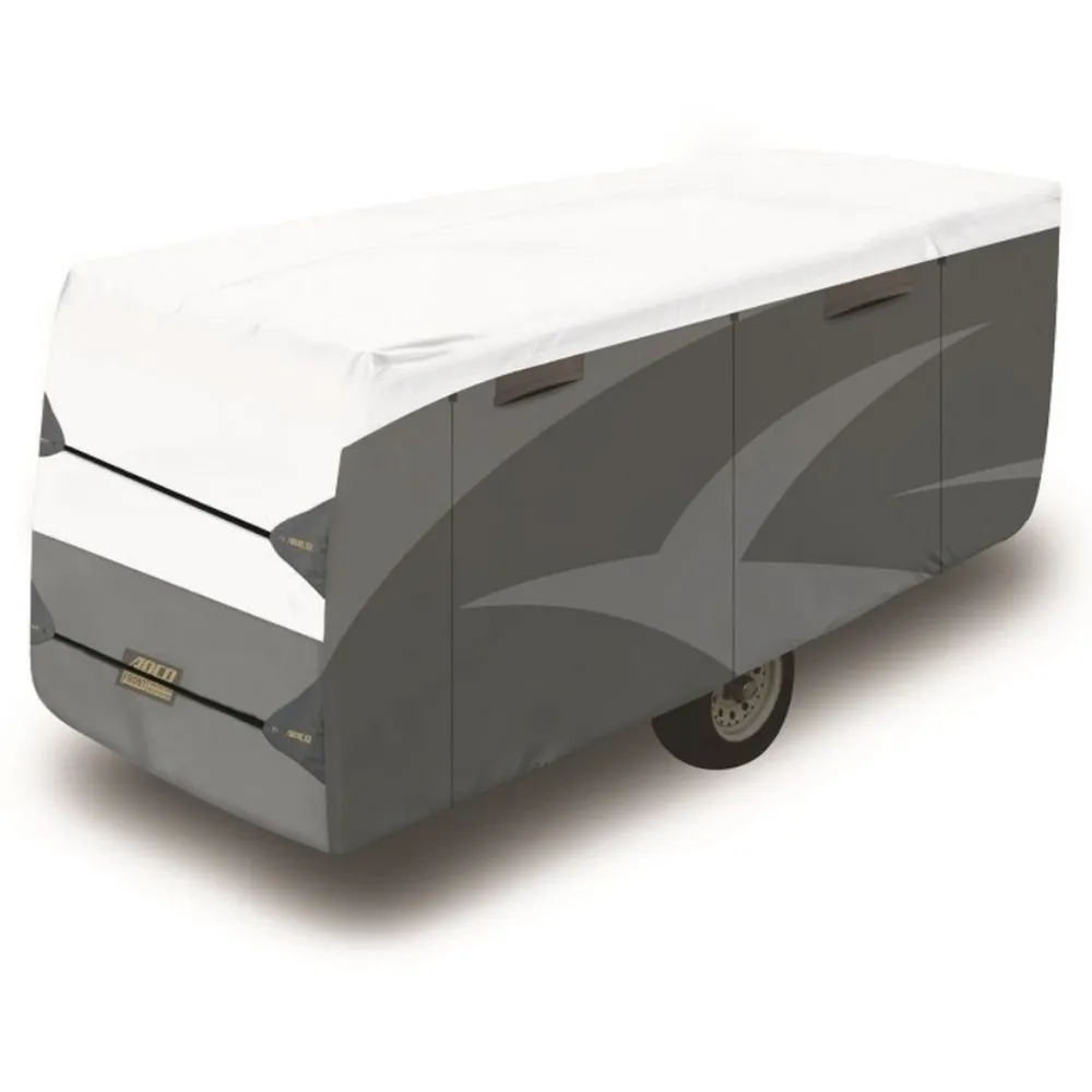 Backed by a huge 3-year warranty, the ADCO Designer Series Olefin HD RV Cover is available to suit Camper Trailers, Caravans, Pop Tops and Motorhomes. Theyre designed for high sun exposure, high moisture, long term storage and even snow, making them the most durable covers on the market! It features superior UV stabilised and breathable fabric that blocks out 99.8% of the suns damaging UV rays. On the Caravan & Pop Top models, there are zippered panels along one side. These allow you access to the interior of your RV whilst the cover is on, and because of the eyelets on these panels, they can also double as an awning!