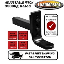 The Loadmaster LM40503 adjustable Towbar hitch is ideal for use when towing most recreational trailers such as Caravans, Poptops and Boat Trailers. It's 3.5T capacity means it can tow larger Caravans up to the weight (ATM).