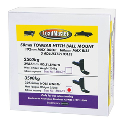 The Loadmaster LM40503 adjustable Towbar hitch is ideal for use when towing most recreational trailers such as Caravans, Poptops and Boat Trailers. It's 3.5T capacity means it can tow larger Caravans up to the weight (ATM).