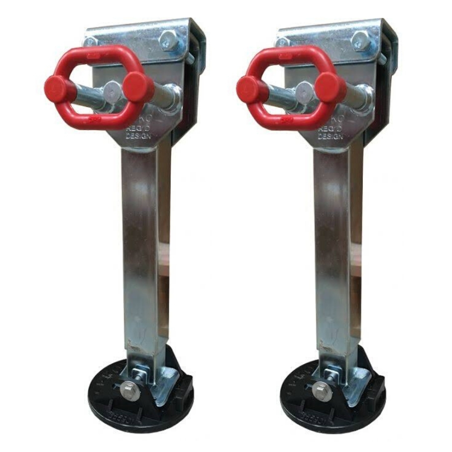 ALKO Corner Steadies are designed to stabilize a trailer or caravan when stationary. The zinc-plated 590mm drop-down corner steady has a hex drive and comes complete with a bigfoot making it ideal for softer ground. The Alko leg comes with a mounting plate which can be welded on allowing the corner steady unit to be then bolted to the bracket (with included bolts). This makes it easily removed & swapped over if required.