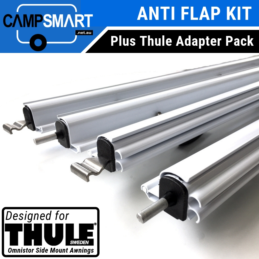 This Premium Anti Flap Kit comes with a pack of specialized adapters to fit Thule Omnistor Side Mount Awnings. The Anti Flap Kit on its own is not otherwise suitable to fit European style box awnings. The following items are included in the package: