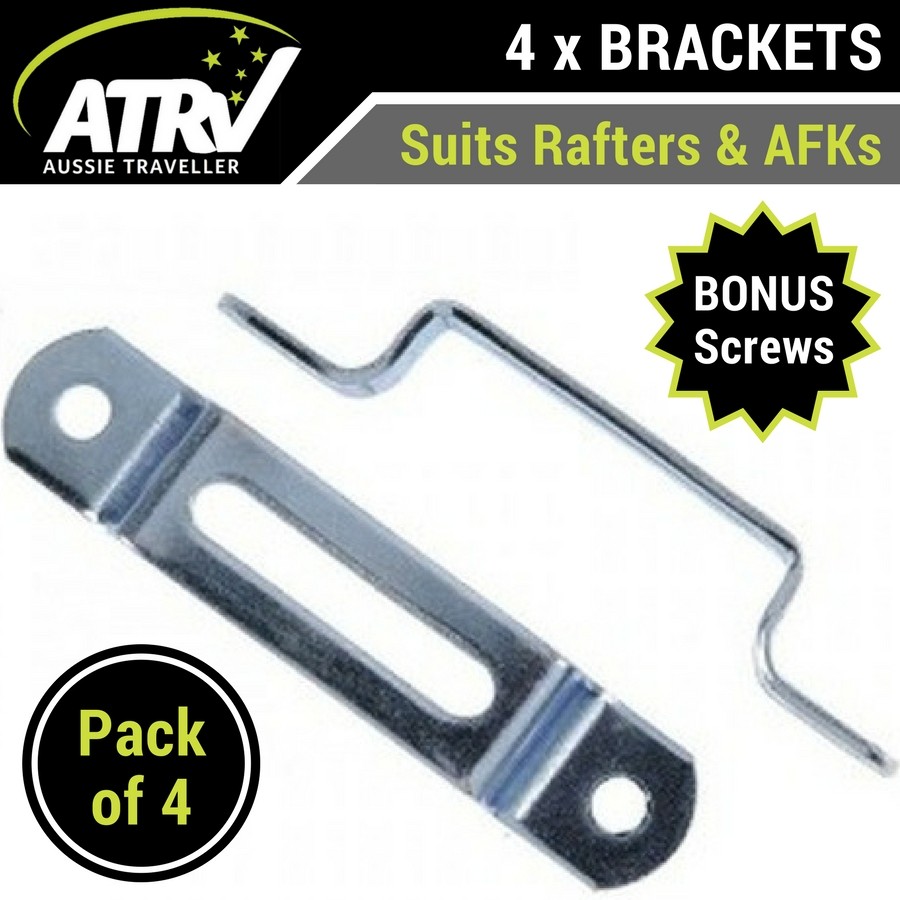 These stainless steel mounting brackets are used with Aussie Traveller branded Curved Roof Rafters and Anti Flap Kits. 2 screws are included with each mounting bracket.