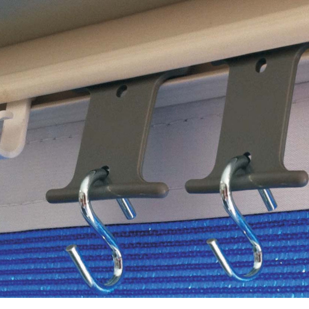 These great little hooks can be slid easily into the sail track groove of most caravan and motorhome awnings. They can be used for a multitude of uses, such as keeping power cords off the ground, hanging lanterns, strip lighting, ornaments or even festive decorations.