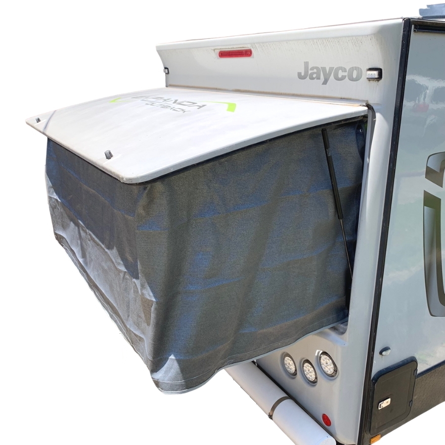 Keep your bed end cooler & add protection from the weather with this Rear Side Bed End Fly Mesh Cover. Designed for the Jayco range of Expanda Caravans & Pop Tops from 2016+ this mesh bed end fly is made from material as Camp Smart's popular range of XD Privacy Screens. The mesh provides a 95% shade rating while also being water repellant and so offers protection from the sun & rain while being breathable at the same time to help keep your bed end cooler on hot days. During the daytime the shade cloth allows some visibility looking out from inside the Expanda, while providing privacy from anyone trying to look in from the outside.