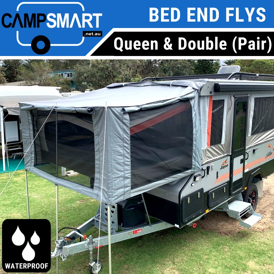 Camper Trailer Bed End Flys with Waterproof Sides & Windows (Pair - Queen & Double)