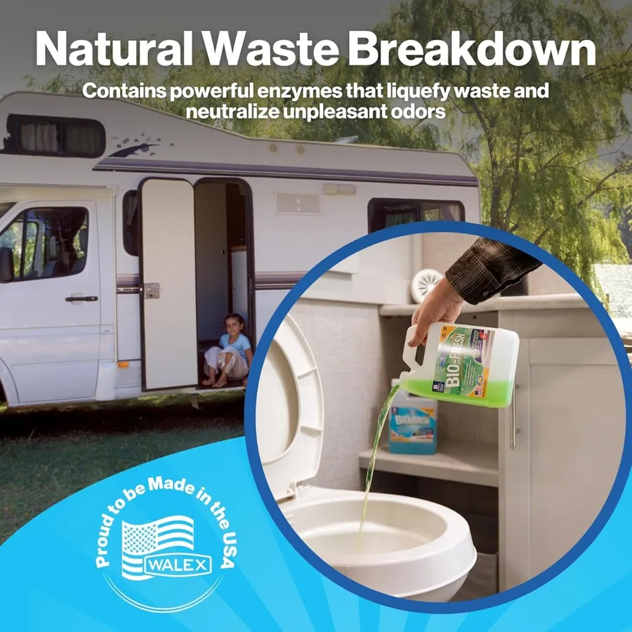 - Breaks down waste and all toilet paper types: Natural bacteria & paper-digesting enzymes liquefy waste and paper, eliminating the need for special RV toilet paper