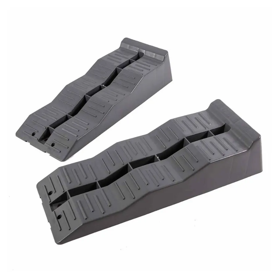 This pair of levelling ramps features 3 level heights with a ridged surface to grip to the tires. The levels are lightweight and made from rust-proof material also easy to clean and UV-resistant.