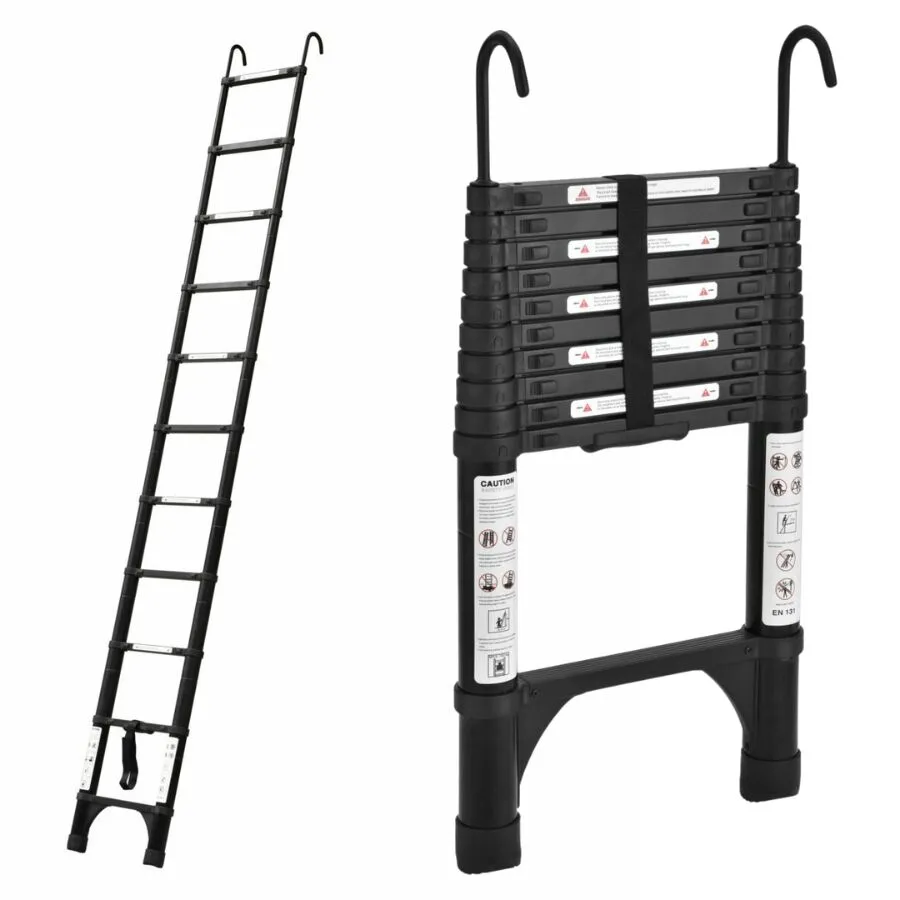 Black 3.8m Portable telescopic ladder with Hooks and carry bag