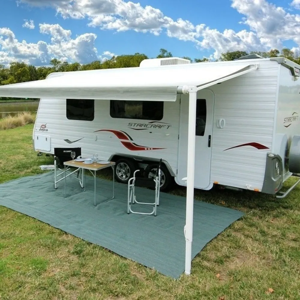 The matting construction provides superior underfoot comfort while at the same time being designed to allow air to circulate (ensuring grass is not killed) whilst stopping insects, bugs & sticks from coming through. Great for under your awning, picnics and any outdoor event.
