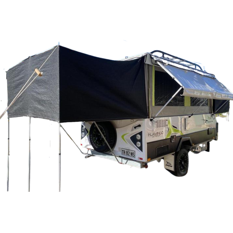 - Shade Cloth Side Walls: 1.1m (Min Height at Front), 1.3m (Max Height at Camper)