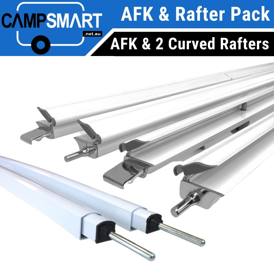 Grab this AFK and Rafter package and save! With an Anti Flap Kit suiting medium to long extensions (2.25m to 2.40m) and 2 curved rafters suiting awning from 12 to 17 foot in width, this package will suit most rollout awnings.