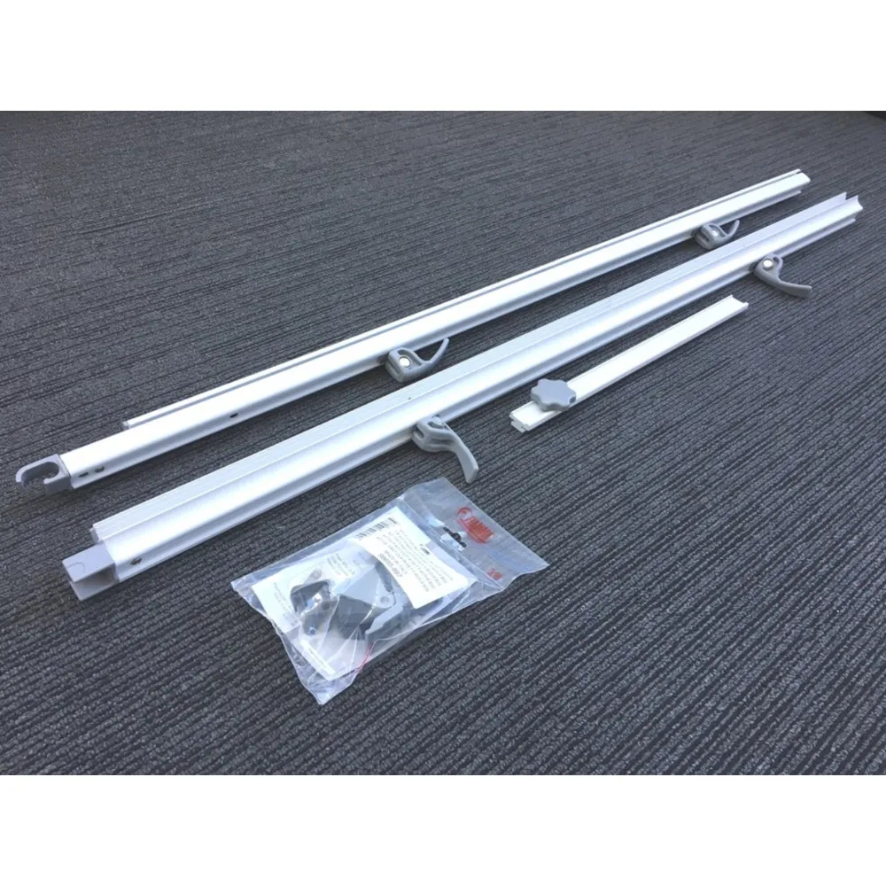 This newly developed anti-flap kit is designed for Fiamma F45S awnings from 3.0m and above with an internal extension of 2.5m. It may also be suitable for other F45 awnings. The pair of aluminium def-lapper bars slot together and clamp down along the edge of the awning fabric, eliminating flapping and increasing the structural strength of the awning. Also included in the bars is an in-built sail track which can be used to install accessories such as privacy screens or annex walls.