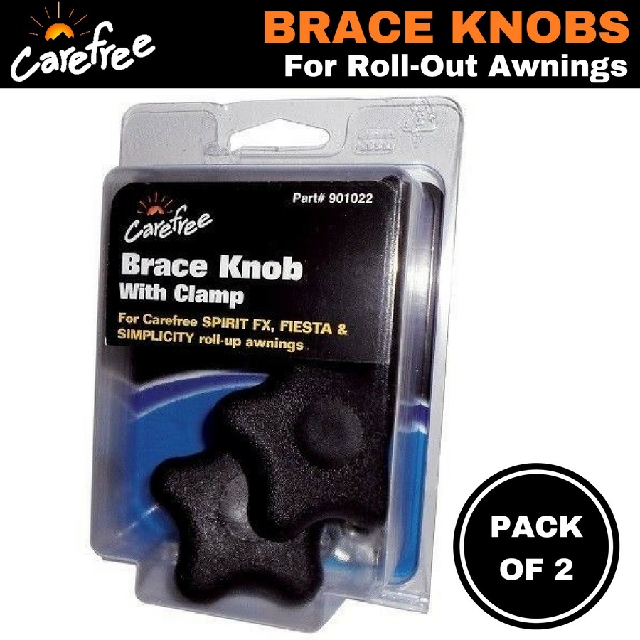 These Carefree caravan awning Brace Knob with Clamp are sold in pairs. They are used to brace the roll out caravan awning in the extended position.