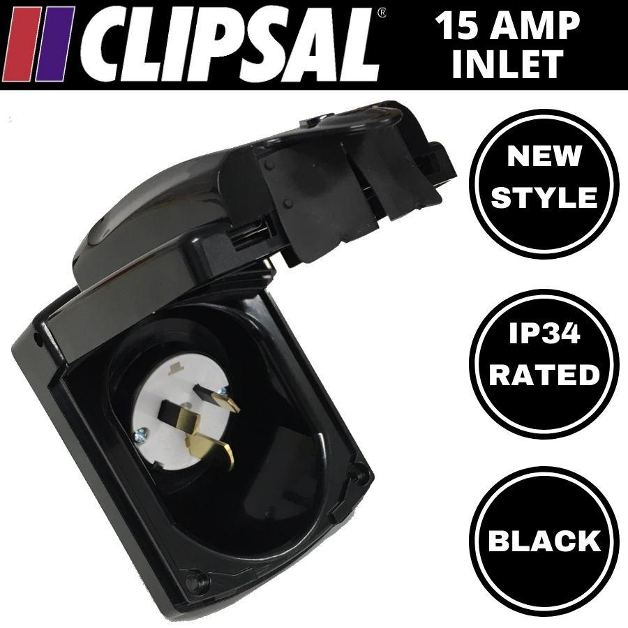 The Clipsal External 15amp Power Inlet is a weather proof power inlet designed to be fitted on the exterior of caravans, campers and motorhomes. It can also be used for temporary building sites etc.