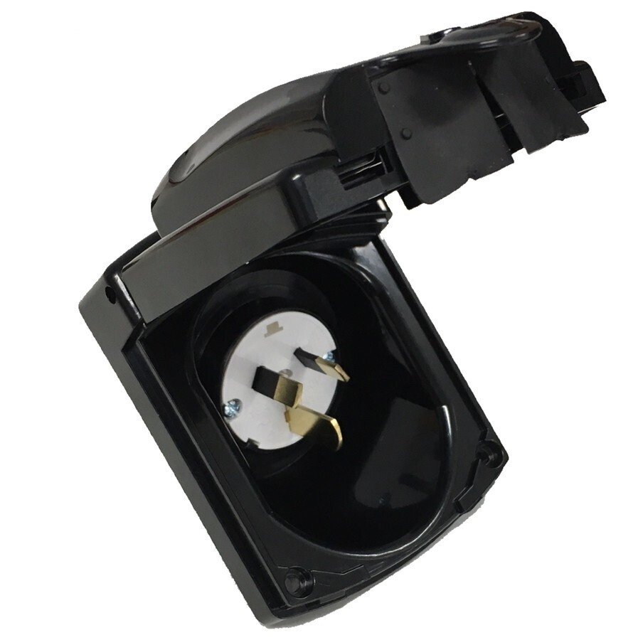 Black Clipsal External 15amp Power Inlet with Weatherproof Lid