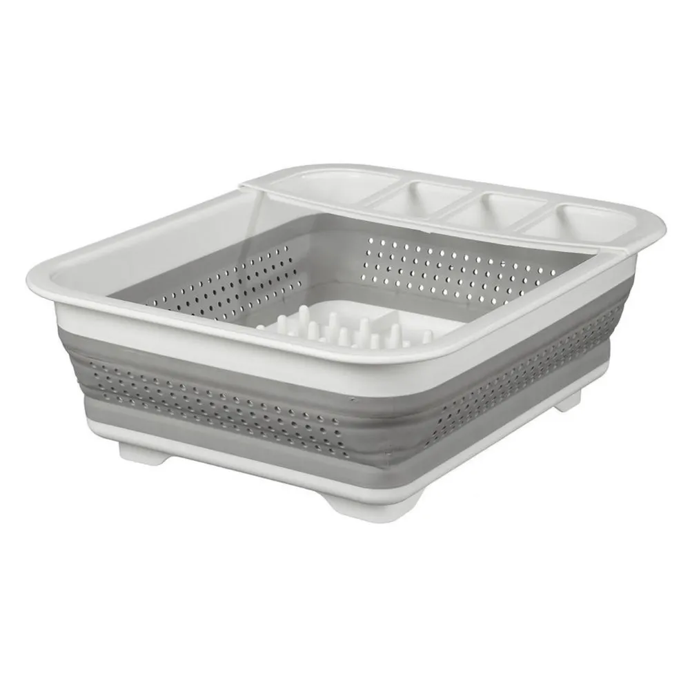 Perfectly suited to life in the caravan, this dish drainer has an innovative collapsible design featuring sturdy silicone outer walls. It folds flat to to just 5.5cm for efficient storage and a separate utensil holder keeps cutlery and smaller item upright for faster drying.