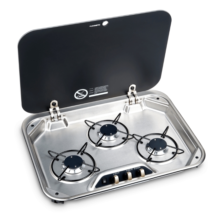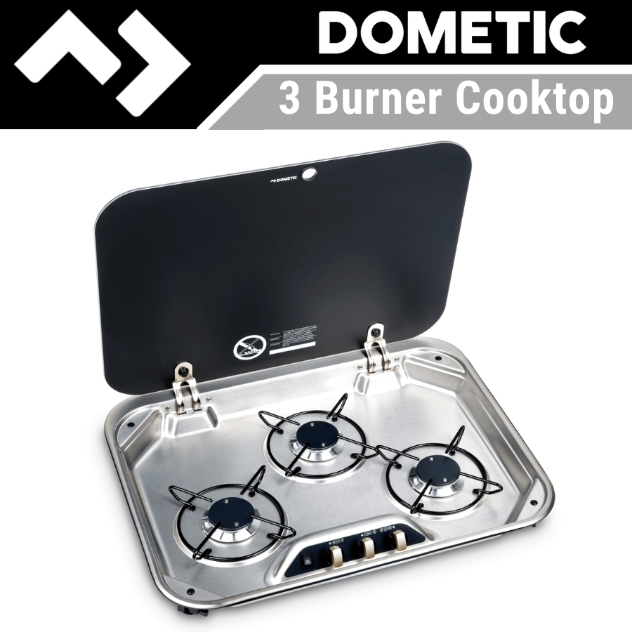 Dometic 3 Burner Stainless Steel Cooktop with Glass Lid