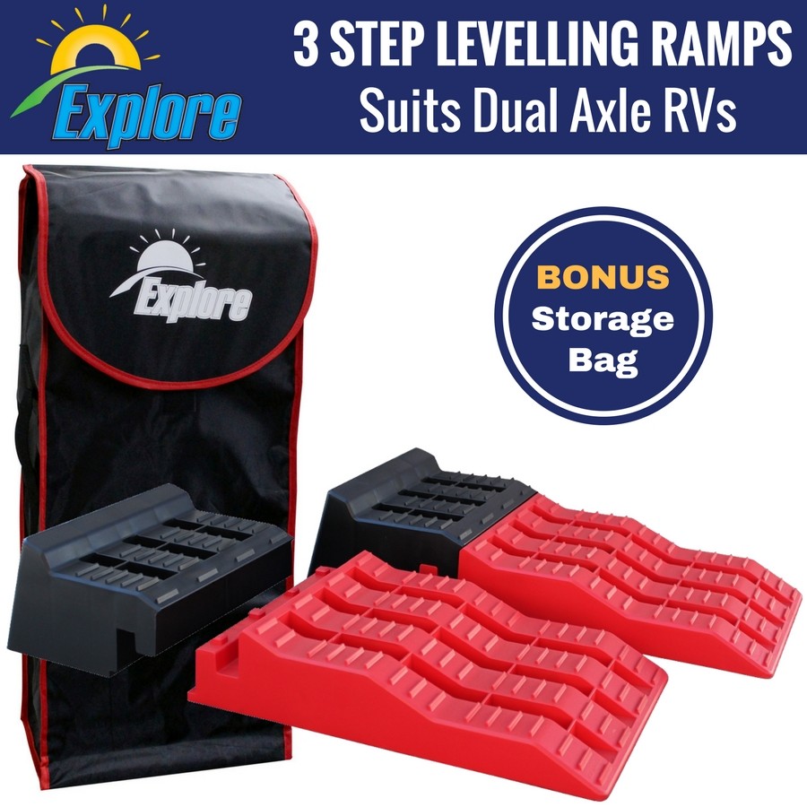 The Explore CVL2 Levellering ramps are unique to the market. The rear section of the ramp can be removed so the ramps can suit dual axle (as well as single axle) Caravans while maintaining the 3 step system. The 1 piece 3 step ramps are otherwise too long for tandem axle Caravans.