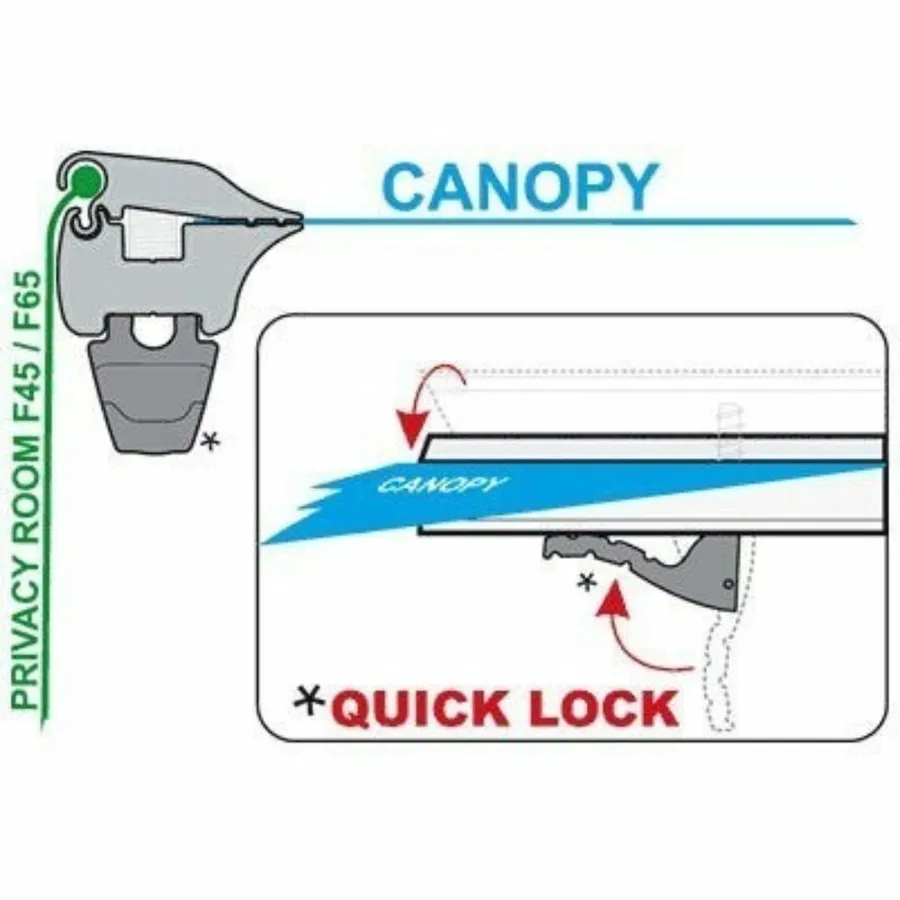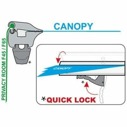 Fiamma's new Fast Clip is lighter and simplified, the side panels of the Privacy room are quickly and easily joined with the fabric of the awning.
