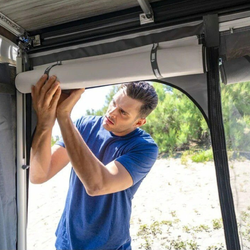 The Fiamma privacy room infill Panel 50 is a 50cm wide front wall panel used for extending the length of the new modular style privacy rooms from 300 to 350. Thereby creating a room to suit the 3.5m Fiamma F45S awning.