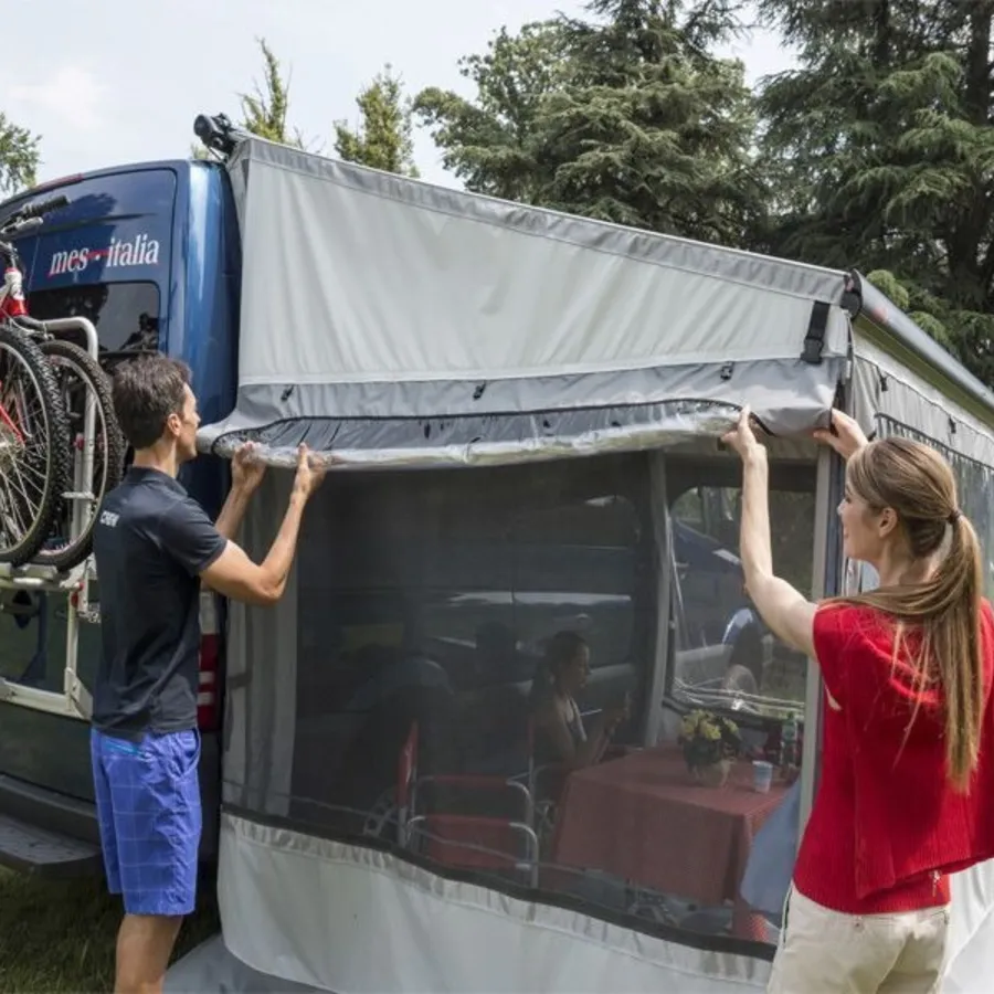 The walls all have windows that can be rolled open. The mosquito net underneath allows complete aeration of your privacy room annex, transforming your Fiamma awning into a comfortable living area. Side panels are quickly put together by using an exclusive Clip System, giving you more time to enjoy your getaway!
