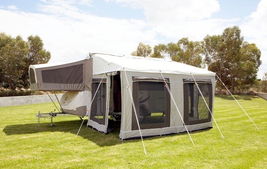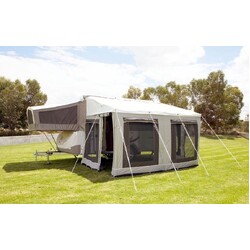 The brand new Jayco Awning Walls have been specifically designed for the Jayco factory branded bag awnings often fitted to the Jayco Eagle or Hawk Camper Trailer (both Touring and Outback models). While referred to as 11 ft, the actual measurement for the long wall is shorter (approx. 3.05m) to align with the riser arms where they attach to the Eagle & Hawk Camper trailers. The end walls are approximately 2.25m in width to match the size of the current bag awning. The walls attach to each other and to the Jayco bag awning by zip.