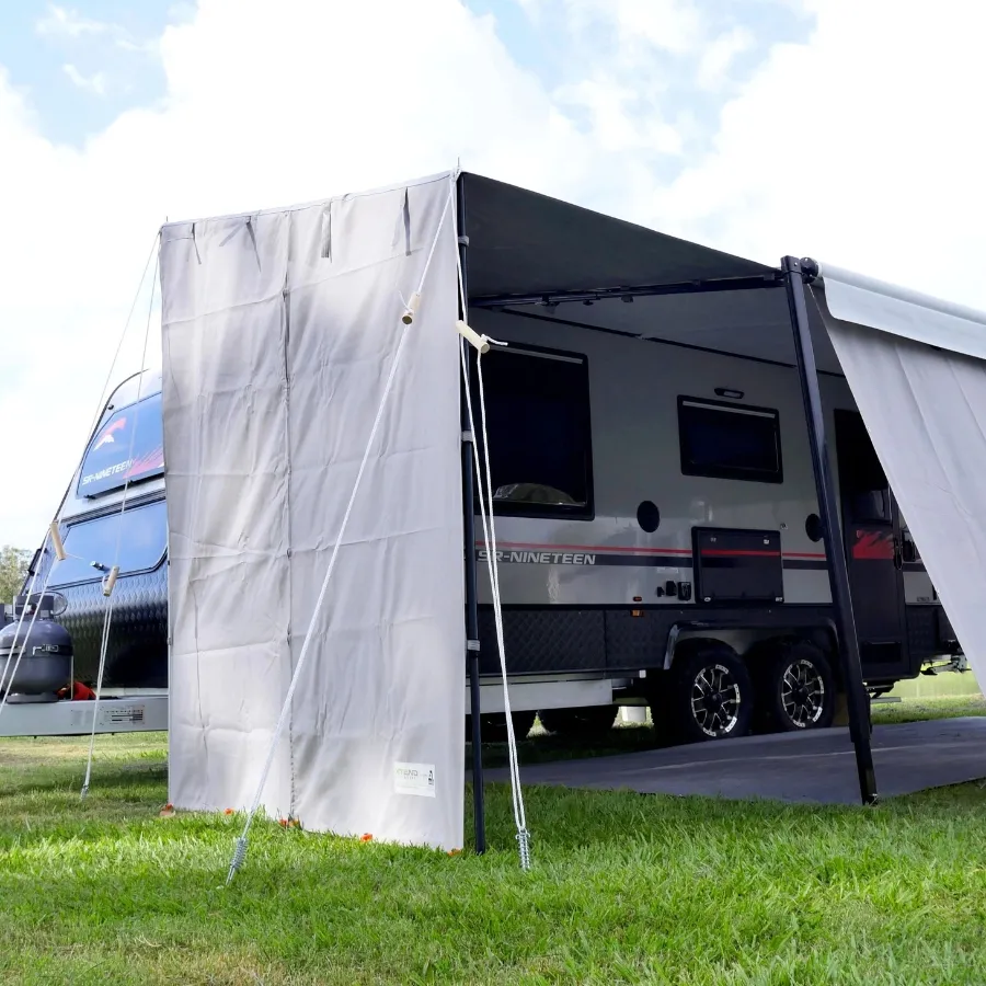 The Xtend Outdoors Mini BBQ Porch is a great addition to your awning, to extend your living area, cook on your BBQ, or to simply provide a dry, shaded area to relax under.