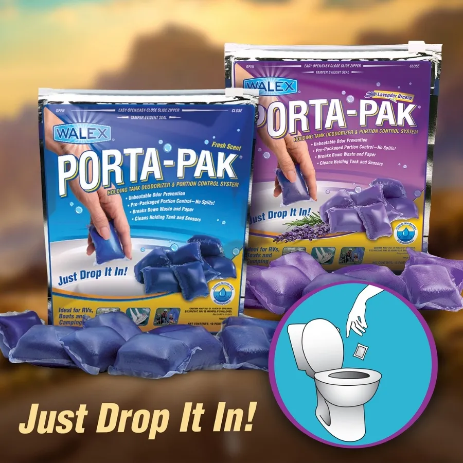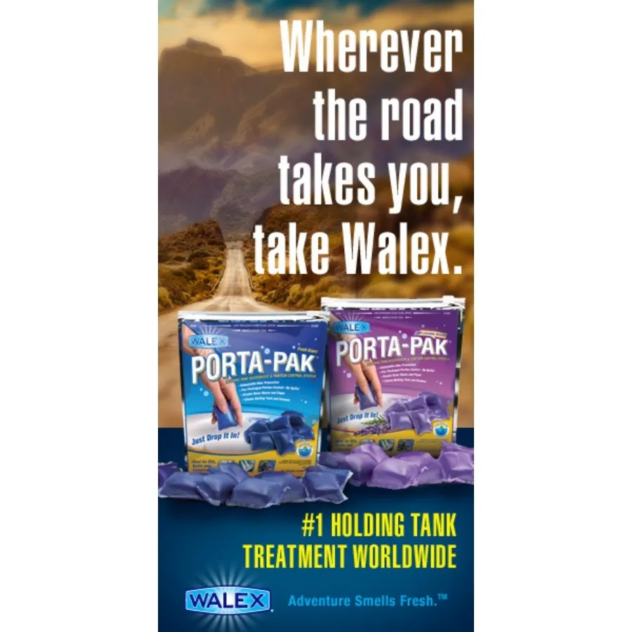 Porta-Pak sachets utilise the Walex Wave 2 odour control technology, delivering long-term odour prevention for all caravan, boat and recirculating toilet applications.