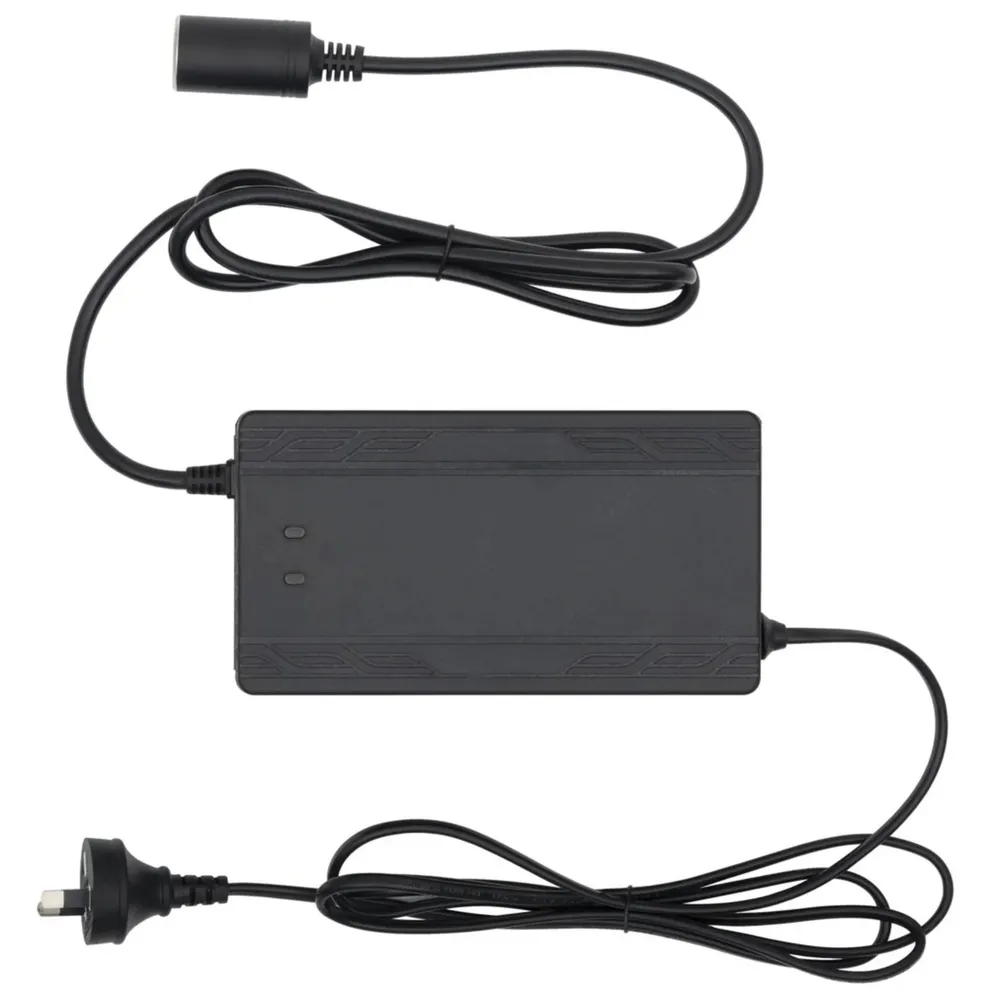A handy solution for powering 12V equipment such as car coolers and medium to larger-sized compressor camping fridges from a mains AC power source. Supplied with a 1.5m output lead with cigarette socket output, making connection simple and easy.