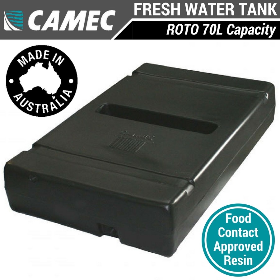 Plastic fresh water tank for caravans and recreational vehicles. Australian made from food contact approved resin. Buy with confidence when you buy Australian made knowing the Roto Millard freshwater tank meets Australian food safety standards.