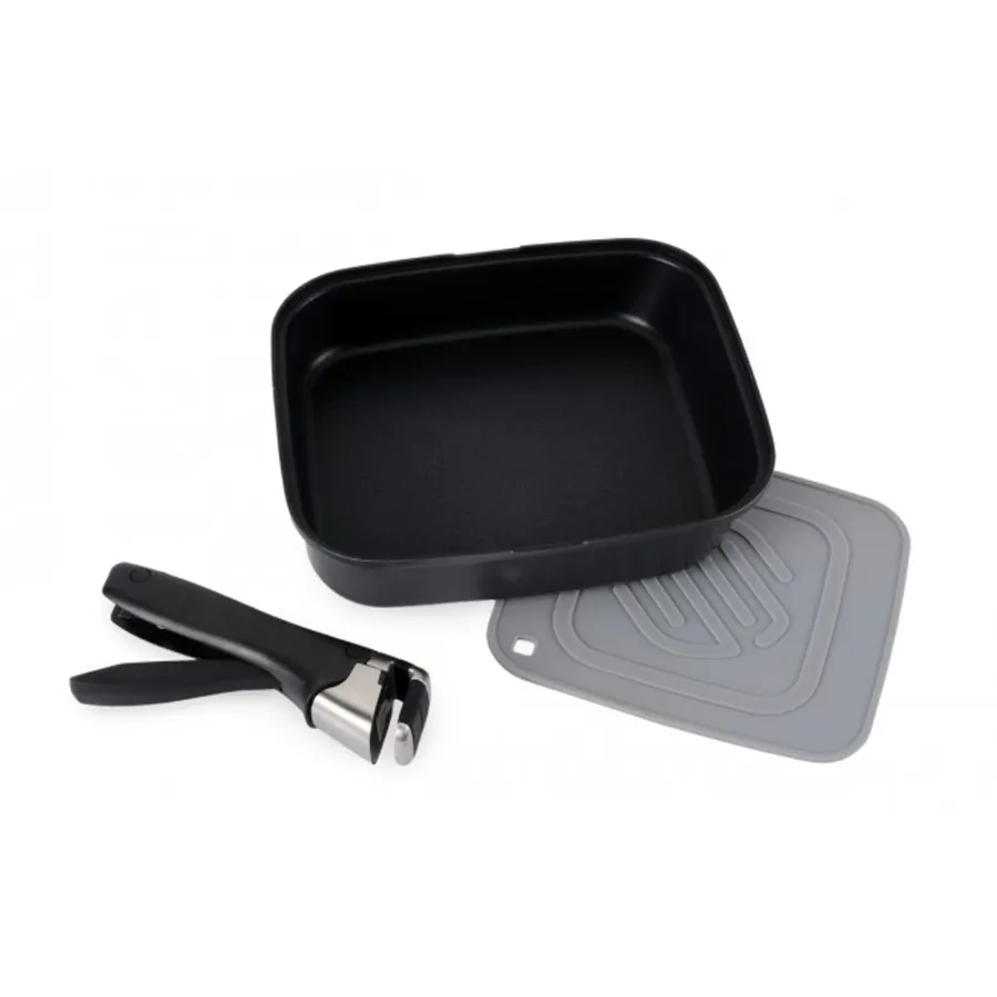 The square design means frypans, pots and pans can all fit side by side on small stove tops allowing you to use all burners at once. When not in use the Smartspace frypan is designed to neatly stack with the smartspace pot set (sold separately) for quick and easy storage.