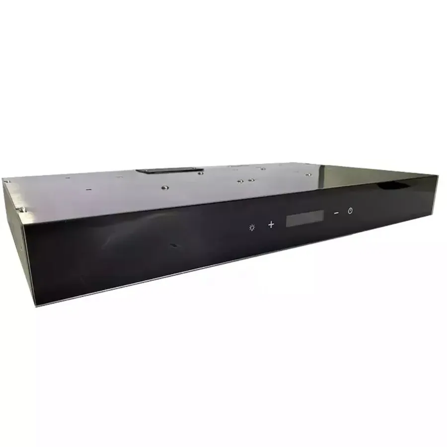 This compact and stylish rangehood has a tempered glass front panel with touch controls & LCD clock display. The body is stainless steel and mounted under the cupboard which allows the exhaust to go through the wall or directed upwards.