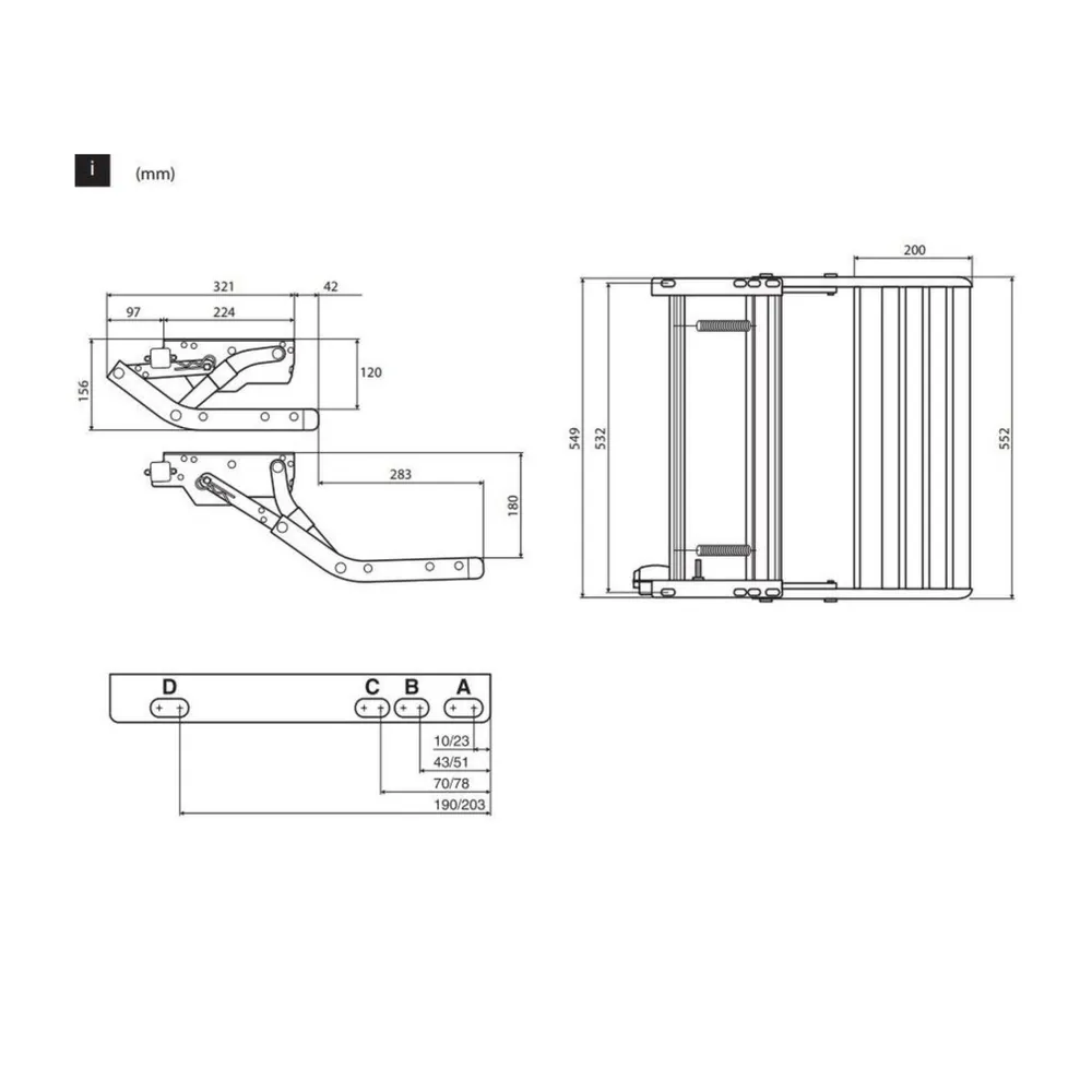 - Maximum static load of 200Kg