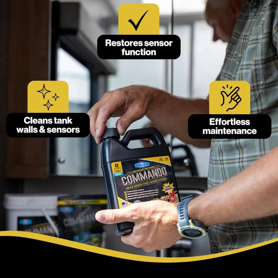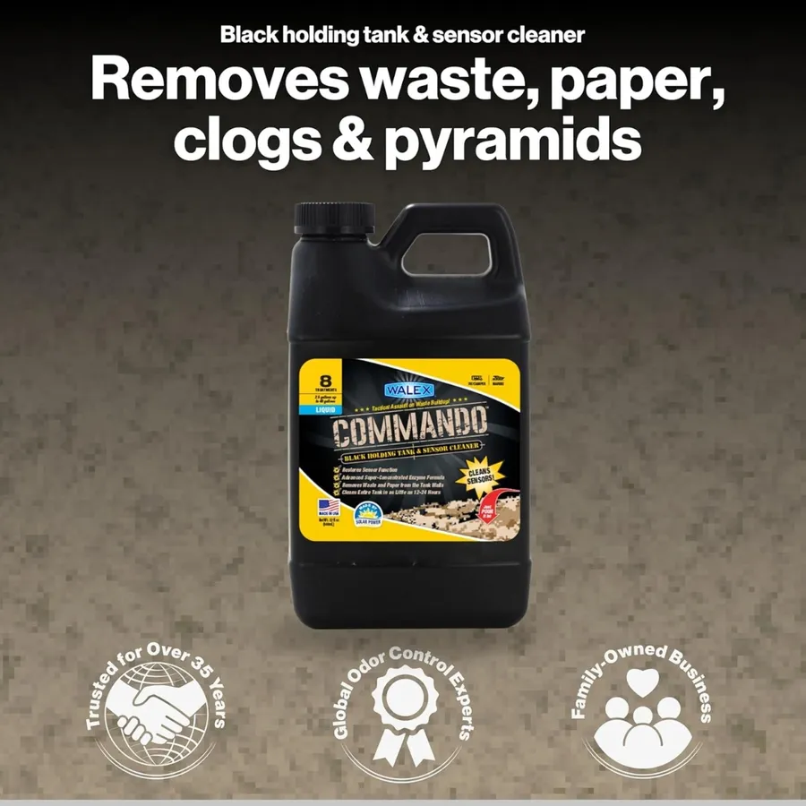 When your black tank sensors stop reading correctly or you’re dealing with lingering odors, it’s time to call in Commando®. This super-concentrated, enzyme-powered cleaner is formulated to tackle the toughest buildup on tank walls and sensors—no scrubbing required.
