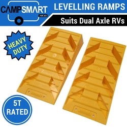 This pair of levelling ramps features a ridged surface to grip to the tires and is sized to fit dual axle Caravans and best suits RVs with small to medium sized wheels. The levels are lightweight and made from rust-proof material also easy to clean and UV-resistant.