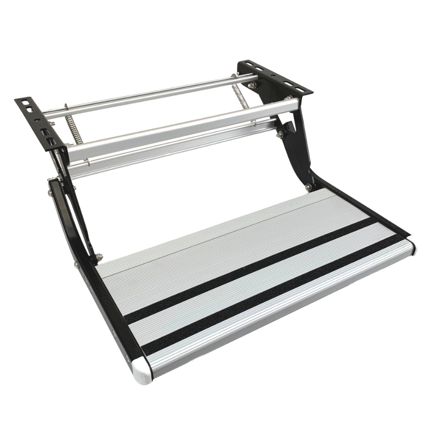 Campsmart's single pull-out aluminium step features an outstanding design together with a premium quality build & finish. It is stylish a yet tough and lightweight step, easy to pull out and fold away.