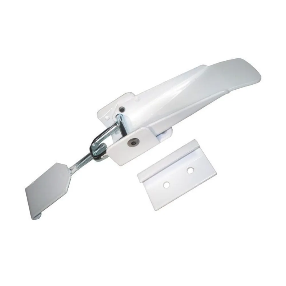 This clamp is commonly used on pop-top caravans and wind up campers such as the Jayco camper trailer range. The clamp holds down the roof while the trailer is in storage or transit.